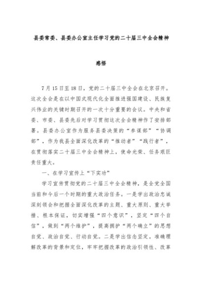 【七哥公文】2024年:县委常委、县委办公室主任学习党的二十届三中全会精神感悟+更多免费公文+VX:QiGeGongWen2024