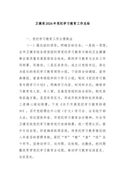 / 【七哥公文】2024年:卫健局2024年党纪学习教育工作总结+更多免费公文+VX:QiGeGongWen2024