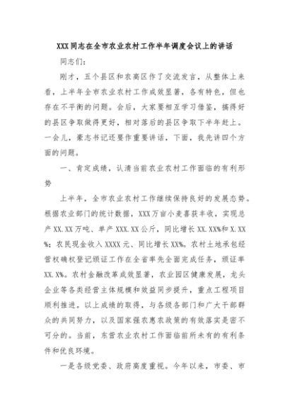 / 【七哥公文】2024年:XXX同志在全市农业农村工作半年调度会议上的讲话+更多免费公文+VX:QiGeGongWen2024