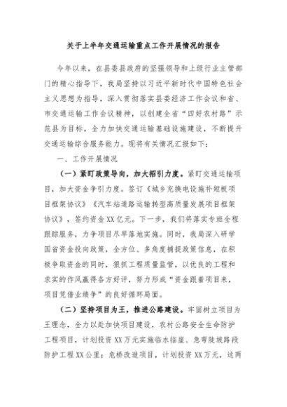 / 【七哥公文】2024年:关于上半年交通运输重点工作开展情况的报告+更多免费公文+VX:QiGeGongWen2024