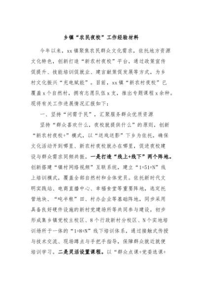 / 【七哥公文】2024年:乡镇“农民夜校”工作经验材料+更多免费公文+VX:QiGeGongWen2024