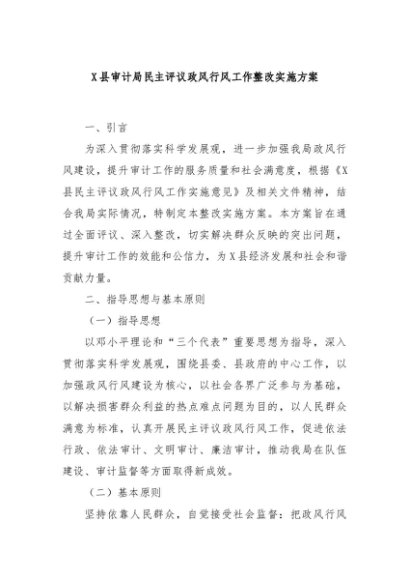 / 【七哥公文】2024年:X县审计局民主评议政风行风工作整改实施方案+更多免费公文+VX:QiGeGongWen2024