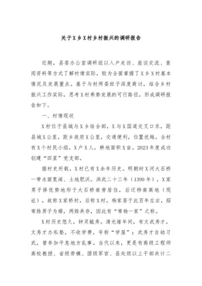 / 【七哥公文】2024年:关于X乡X村乡村振兴的调研报告+更多免费公文+VX:QiGeGongWen2024