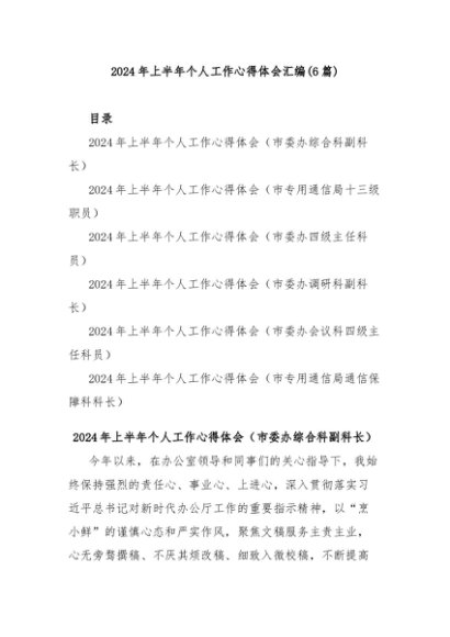 / 【七哥公文】2024年:(6篇)2024年上半年个人工作心得体会汇编+更多免费公文+VX:QiGeGongWen2024