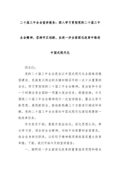 【七哥公文】2024年:二十届三中全会宣讲报告:深入学习贯彻党的二十届三中全会精神,坚持守正创新,在进一步全面深化改革中推进中国式现代化+更多免费公文+VX:QiGeGongWen2024