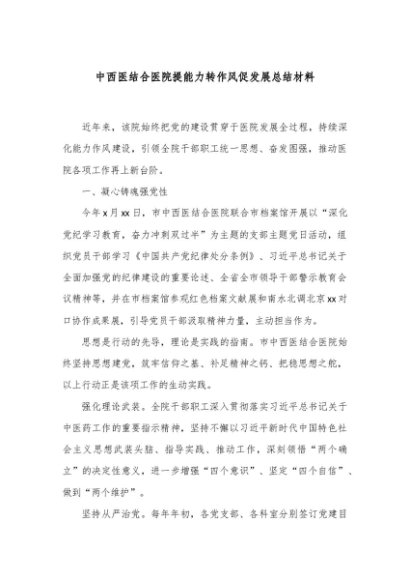 / 【七哥公文】2024年:中西医结合医院提能力转作风促发展总结材料+更多免费公文+VX:QiGeGongWen2024