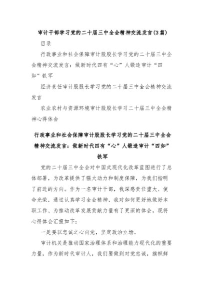 【七哥公文】2024年:(3篇)审计干部学习党的二十届三中全会精神交流发言+更多免费公文+VX:QiGeGongWen2024