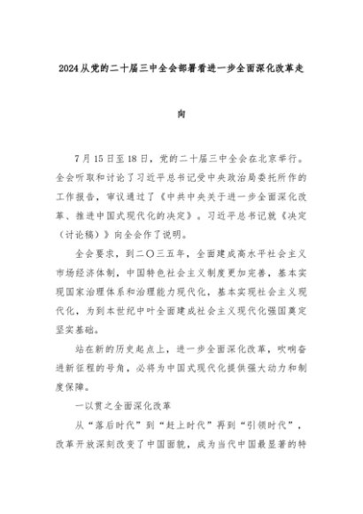 【七哥公文】2024年:2024从党的二十届三中全会部署看进一步全面深化改革走向+更多免费公文+VX:QiGeGongWen2024
