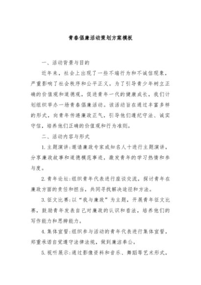/ 【七哥公文】2024年:青春倡廉活动策划方案模板+更多免费公文+VX:QiGeGongWen2024