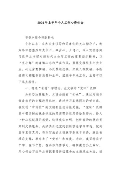 / 【七哥公文】2024年:2024年上半年个人工作心得体会+更多免费公文+VX:QiGeGongWen2024