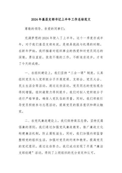 / 【七哥公文】2024年:2024年基层支部书记上半年工作总结范文+更多免费公文+VX:QiGeGongWen2024