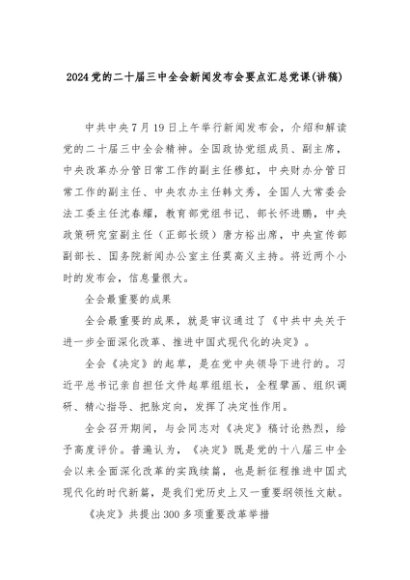 【七哥公文】2024年:2024党的二十届三中全会新闻发布会要点汇总党课(讲稿)+更多免费公文+VX:QiGeGongWen2024