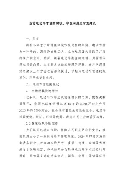 【七哥公文】2024年:当前电动车管理的现状、存在问题及对策建议+更多免费公文+VX:QiGeGongWen2024