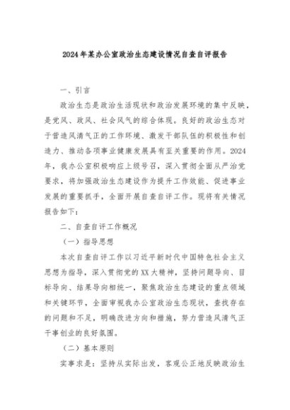 / 【七哥公文】2024年:2024年某办公室政治生态建设情况自查自评报告+更多免费公文+VX:QiGeGongWen2024