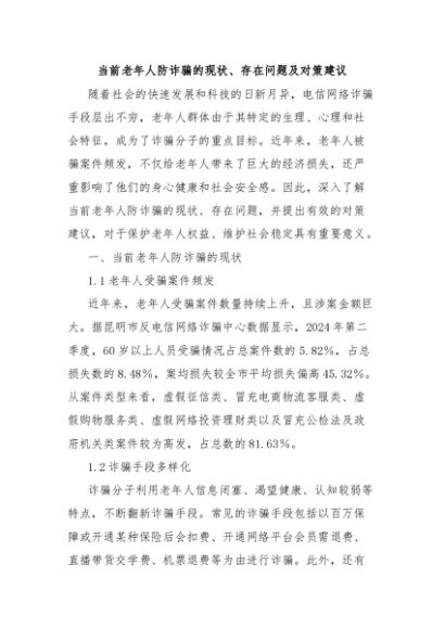 【七哥公文】2024年:当前老年人防诈骗的现状、存在问题及对策建议+更多免费公文+VX:QiGeGongWen2024