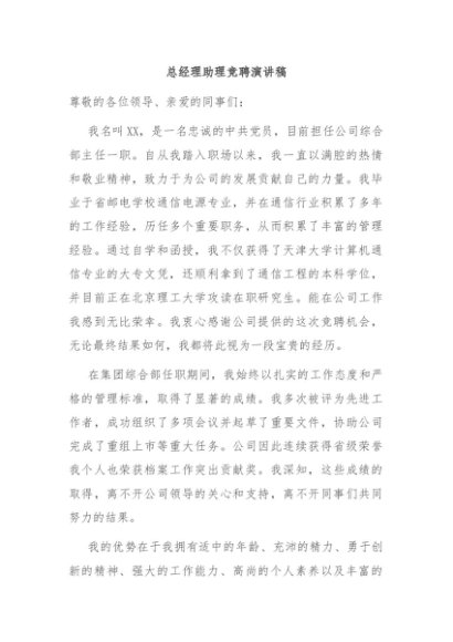 / 【七哥公文】2024年:总经理助理竞聘演讲稿+更多免费公文+VX:QiGeGongWen2024