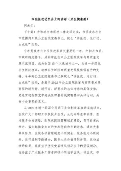 / 【七哥公文】2024年:深化医改动员会上的讲话(卫生健康委)+更多免费公文+VX:QiGeGongWen2024