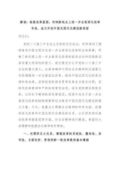 【七哥公文】2024年:解读:绘就改革蓝图,吹响新起点上进一步全面深化改革号角,奋力开创中国式现代化建设新局面+更多免费公文+VX:QiGeGongWen2024