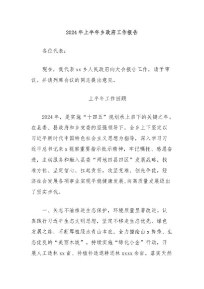 / 【七哥公文】2024年:2024年上半年乡政府工作报告+更多免费公文+VX:QiGeGongWen2024