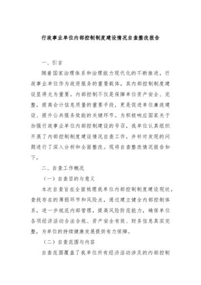 / 【七哥公文】2024年:行政事业单位内部控制制度建设情况自查整改报告+更多免费公文+VX:QiGeGongWen2024