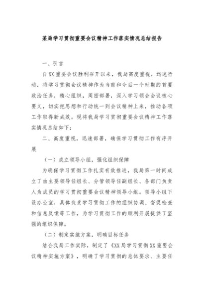 / 【七哥公文】2024年:某局学习贯彻重要会议精神工作落实情况总结报告+更多免费公文+VX:QiGeGongWen2024