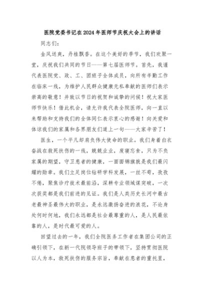 / 【七哥公文】2024年:医院党委书记在2024年医师节庆祝大会上的讲话+更多免费公文+VX:QiGeGongWen2024