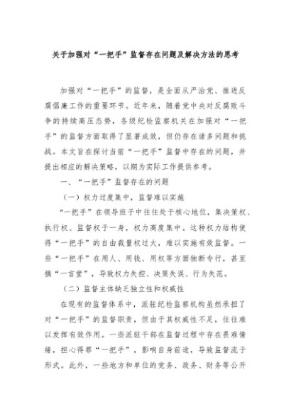 / 【七哥公文】2024年:关于加强对“一把手”监督存在问题及解决方法的思考+更多免费公文+VX:QiGeGongWen2024