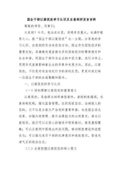 / 【七哥公文】2024年:国企干部以案促改学习认识及自查剖析发言材料+更多免费公文+VX:QiGeGongWen2024