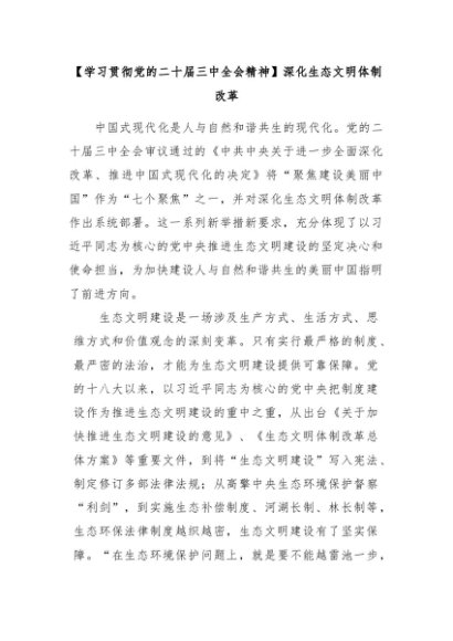 【七哥公文】2024年:学习贯彻党的二十届三中全会精神:深化生态文明体制改革+更多免费公文+VX:QiGeGongWen2024