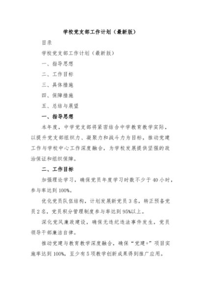 / 【七哥公文】2024年:学校党支部工作计划(最新版)+更多免费公文+VX:QiGeGongWen2024