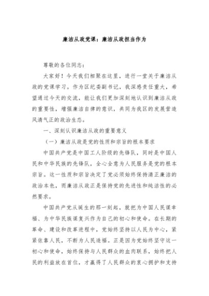 / 【七哥公文】2024年:廉洁从政党课:廉洁从政担当作为+更多免费公文+VX:QiGeGongWen2024