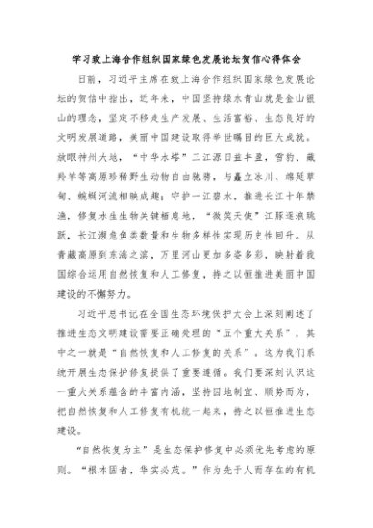 / 【七哥公文】2024年:学习致上海合作组织国家绿色发展论坛贺信心得体会+更多免费公文+VX:QiGeGongWen2024