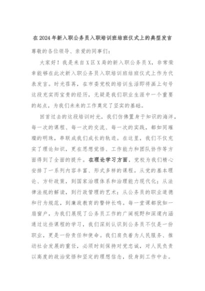 【七哥公文】2024年:在2024年新入职公务员入职培训班结班仪式上的典型发言+更多免费公文+VX:QiGeGongWen2024