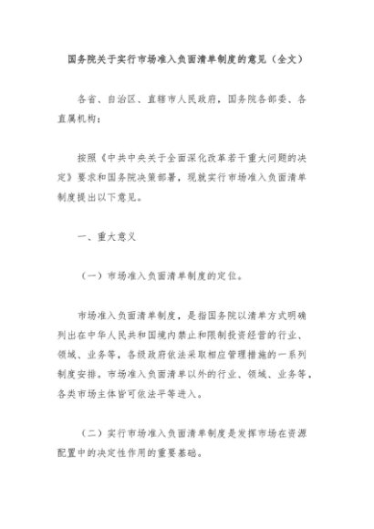 / 【七哥公文】2024年:国务院关于实行市场准入负面清单制度的意见(全文)+更多免费公文+VX:QiGeGongWen2024