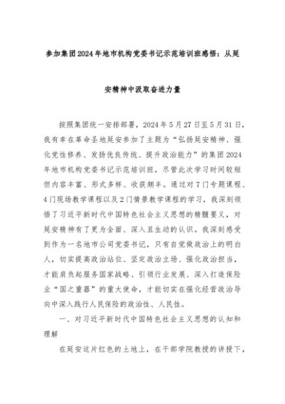 【七哥公文】2024年:参加集团2024年地市机构党委书记示范培训班感悟:从延安精神中汲取奋进力量+更多免费公文+VX:QiGeGongWen2024
