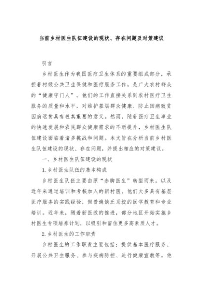 / 【七哥公文】2024年:当前乡村医生队伍建设的现状、存在问题及对策建议+更多免费公文+VX:QiGeGongWen2024
