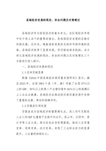 / 【七哥公文】2024年:县域经济发展的现状、存在问题及对策建议+更多免费公文+VX:QiGeGongWen2024