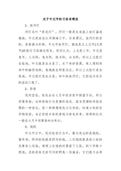 【七哥公文】2024年:关于中元节的习俗有哪些+更多免费公文+VX:QiGeGongWen2024
