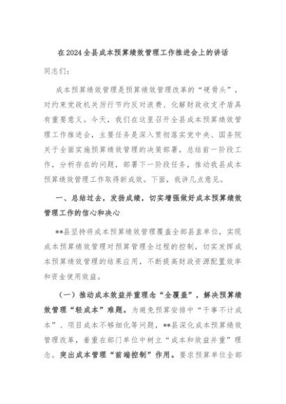 / 【七哥公文】2024年:在2024全县成本预算绩效管理工作推进会上的讲话+更多免费公文+VX:QiGeGongWen2024