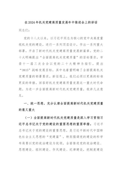 / 【七哥公文】2024年:在2024年机关党建高质量发展年中推进会上的讲话+更多免费公文+VX:QiGeGongWen2024