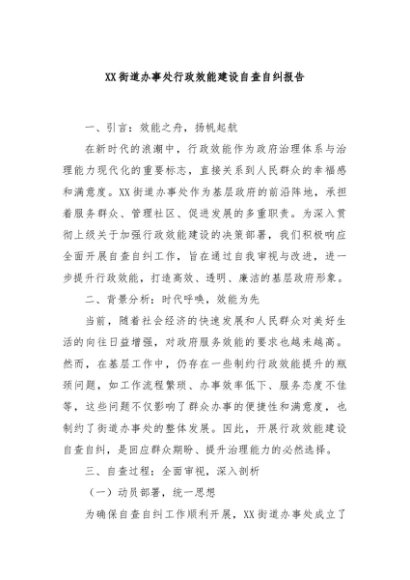 / 【七哥公文】2024年:XX街道办事处行政效能建设自查自纠报告+更多免费公文+VX:QiGeGongWen2024