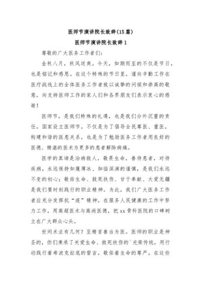 / 【七哥公文】2024年:(15篇)医师节演讲院长致辞+更多免费公文+VX:QiGeGongWen2024