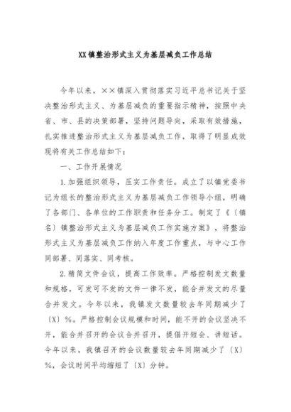 / 【七哥公文】2024年:XX镇整治形式主义为基层减负工作总结+更多免费公文+VX:QiGeGongWen2024