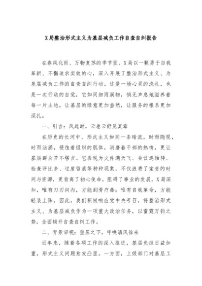 / 【七哥公文】2024年:X局整治形式主义为基层减负工作自查自纠报告+更多免费公文+VX:QiGeGongWen2024