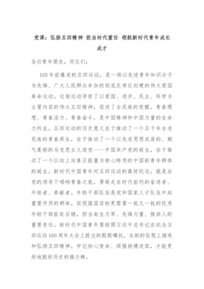 【七哥公文】2024年:党课:弘扬五四精神 担当时代重任 领航新时代青年成长成才+更多免费公文+VX:QiGeGongWen2024