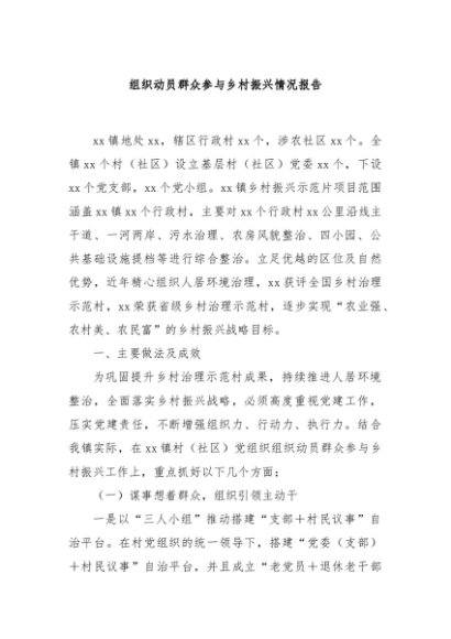/ 【七哥公文】2024年:组织动员群众参与乡村振兴情况报告+更多免费公文+VX:QiGeGongWen2024