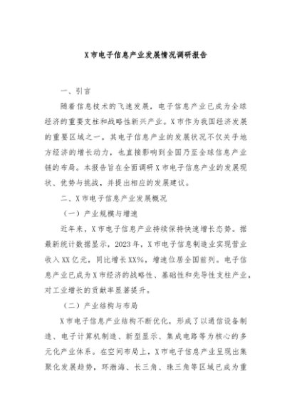 / 【七哥公文】2024年:X市电子信息产业发展情况调研报告+更多免费公文+VX:QiGeGongWen2024