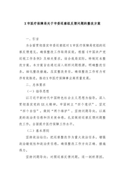 / 【七哥公文】2024年:X市医疗保障局关于市委巡察组反馈问题的整改方案+更多免费公文+VX:QiGeGongWen2024