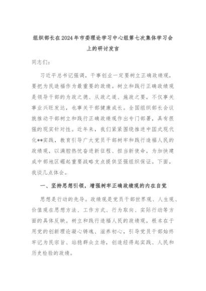 【七哥公文】2024年:组织部长在2024年市委理论学习中心组第七次集体学习会上的研讨发言+更多免费公文+VX:QiGeGongWen2024
