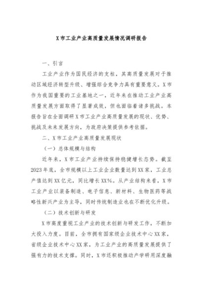 / 【七哥公文】2024年:X市工业产业高质量发展情况调研报告+更多免费公文+VX:QiGeGongWen2024